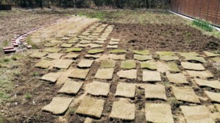 これの続き。またまたスーパービバホームで買ってきた。これ。例によって、マキタの兵器で耕耘した後で、そこに芝生を敷きまくる。これですよ。こんな感じで、耕耘した面積の半分くらいしか敷けてないけど、あとは来年ですね(^^♪でも、先月敷いた場所と、...