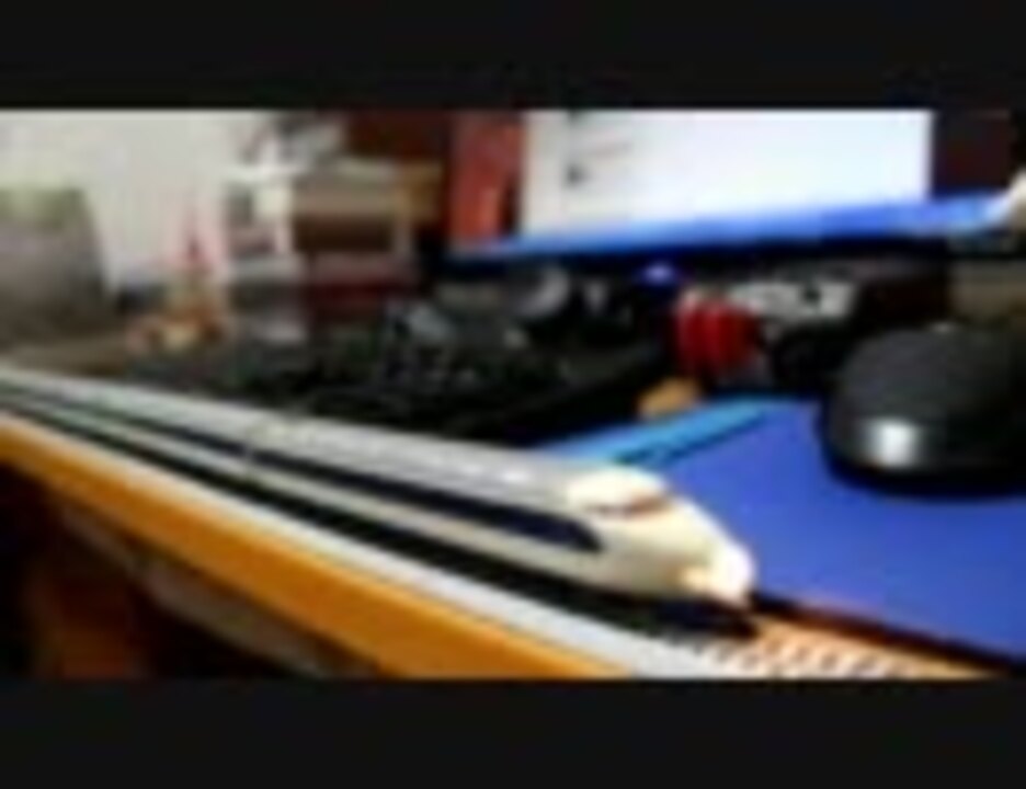 エンドウNゲージ新幹線、鉄道模型復活 一見一番邪魔そうな、「キーボードやマウスよりもさらに手前に線路を通す」という配置で、何十年ぶ...
