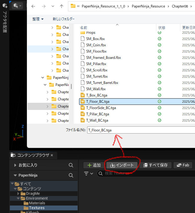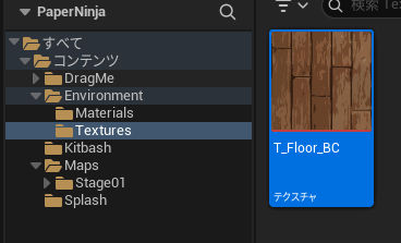 少し右にずれた位置にインポートがあるので、押すと、このように開くので、T_Floor_BC.tgaを選択して、さらにそれを ctrl + S でセーブするとこうなる。