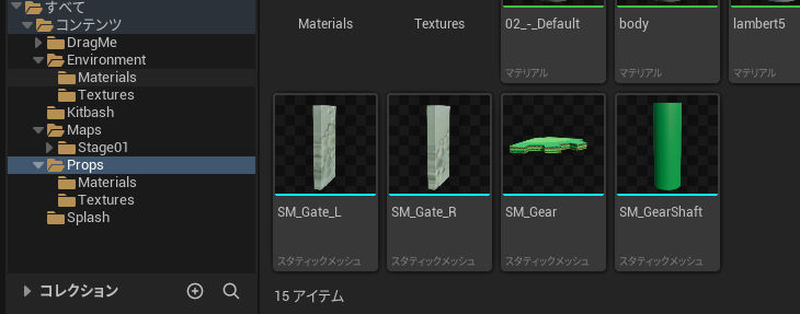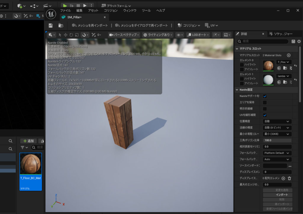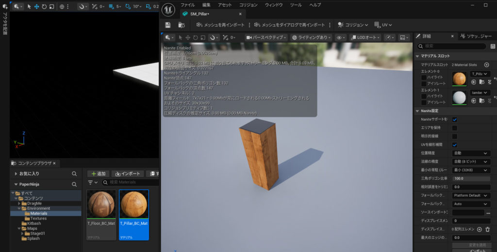 やっぱり気持ち悪いので、Pillarのテクスチャを持ってきて、マテリアルを修正(^^♪