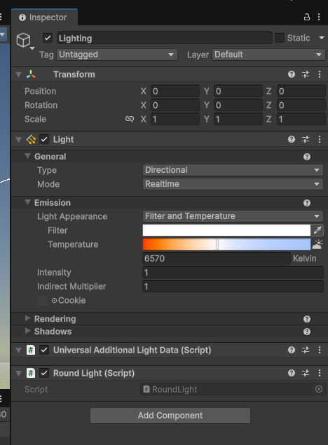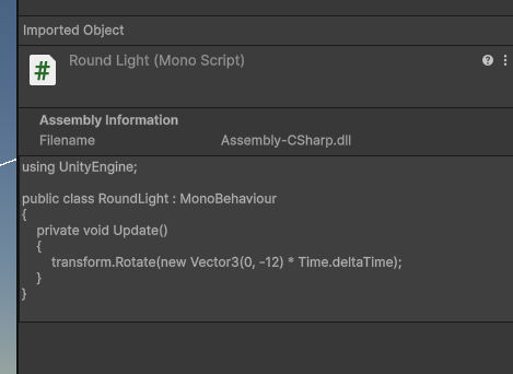 次は、太陽を移動させるそうで、145ページにあるRoundLightスクリプトを作る。これ。