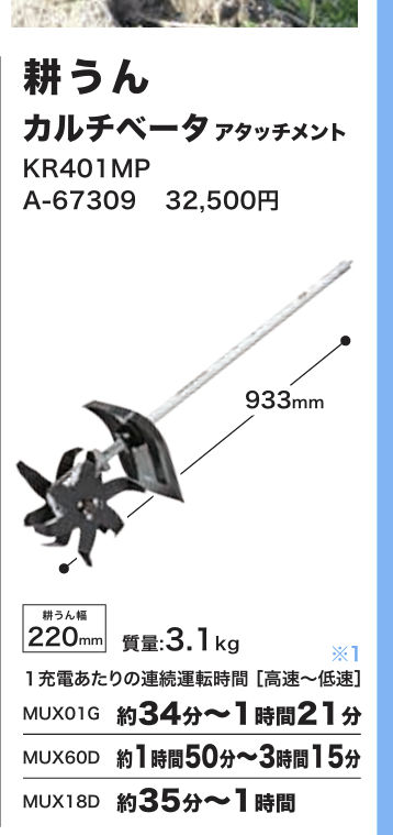 初めて耕耘作業をしてみた結果、マキタの機械の性能は大満足なのだが、やはり18Vのモーターではパワーが不足している感があるし、なにしろバッテリーの減りが速い。今回は一応所定の作業をバッテリー2個でギリギリこなせたので良かったが、あっという間にバッテリーが空になる感じ。これでは、バッテリーにもモーターにも過負荷?かも?だし、力不足な機械で作業するのはやはりストレスの元。