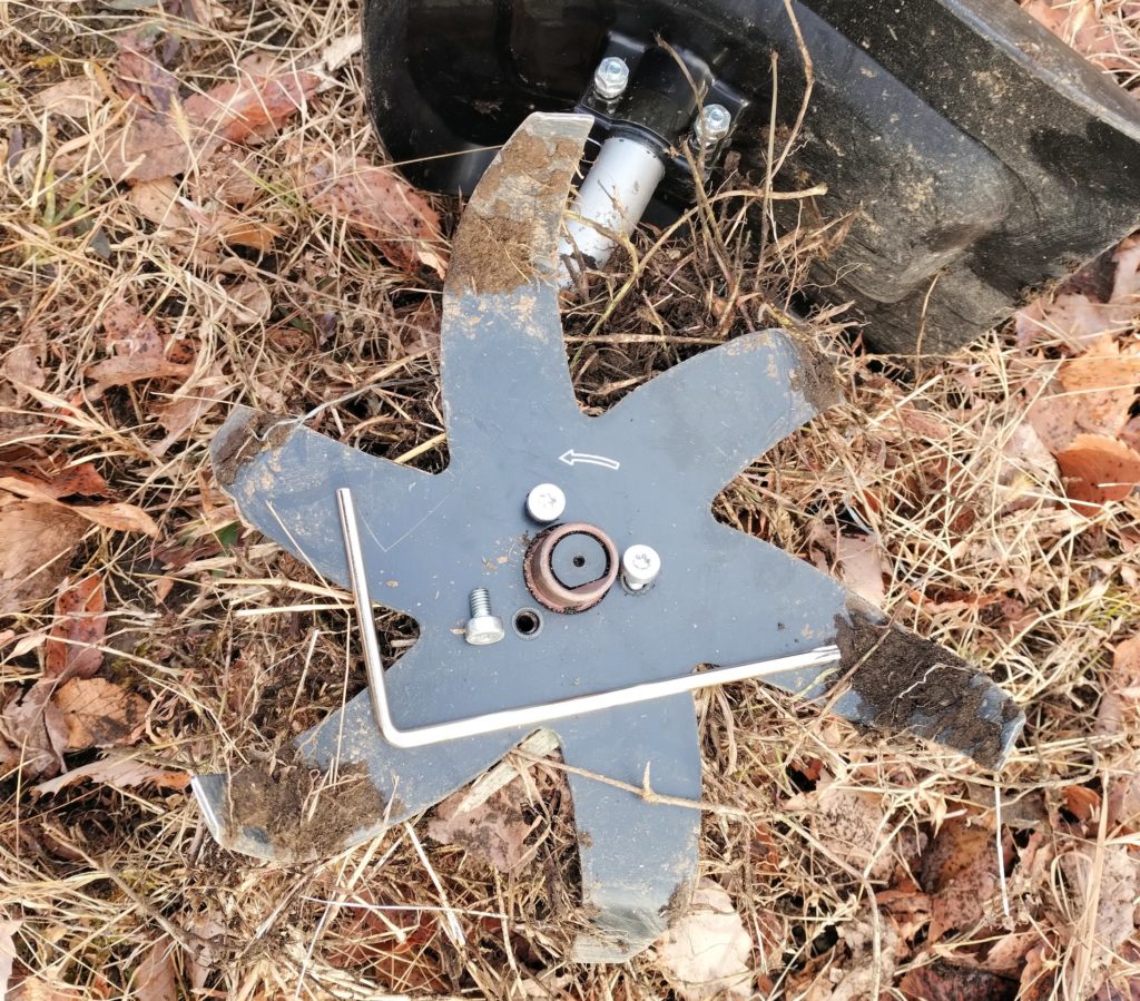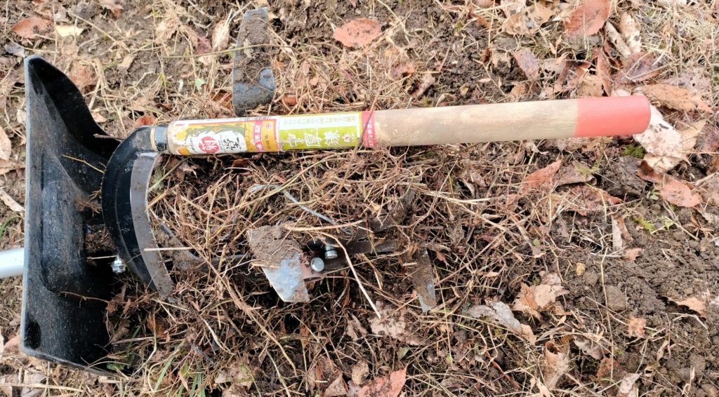 早速やってみた。期待通り、性能は文句なし!しかし、やってみた土地が全く開墾されていなくて雑草の根がはびこり放題の状態だったので、すぐに雑草の根が絡まりまくってこんな状態に。