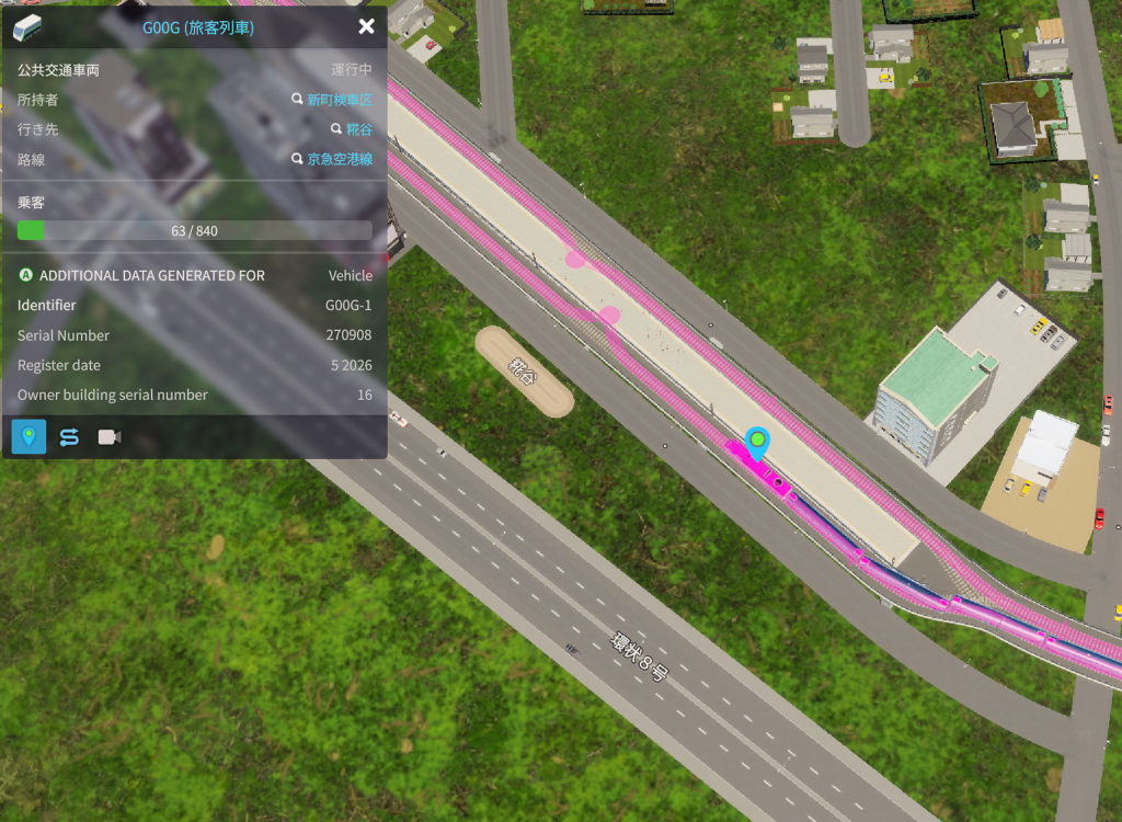 こんな感じで、相変わらず、羽田空港はデフォルトのバニラで用意されている国際空港を使い、電車はまだ京急の車両など無いのでやはりバニラのピンクっぽい車両にしただけ。