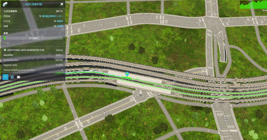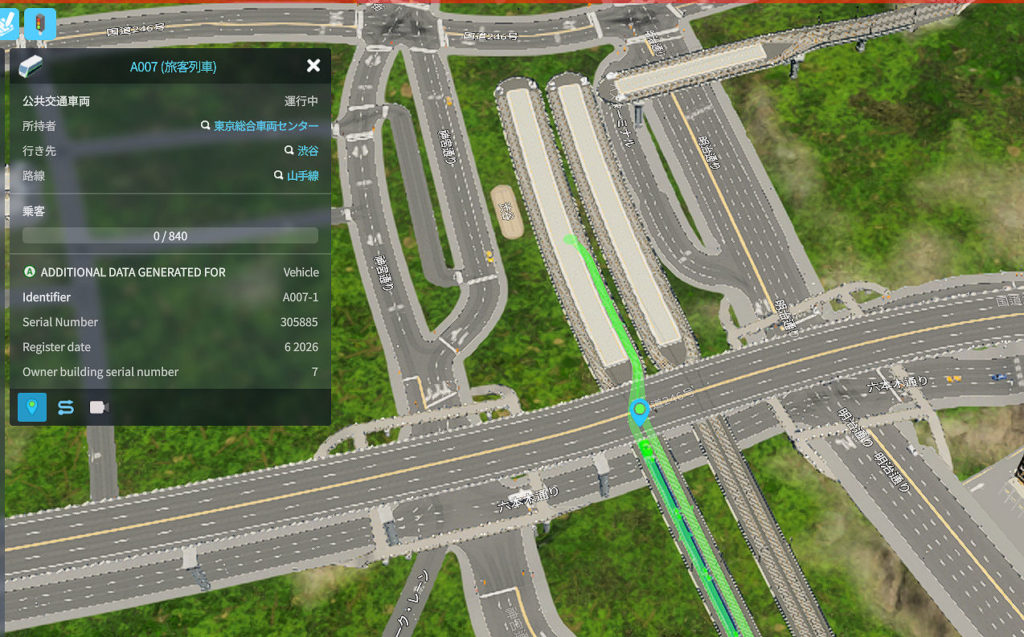 このように、なぜかここが魚籃坂になっているのは、前にも書いた通り、Cities Skylines 2 が、道路の区間を自由に区切って名前を付けられない仕様になっているからですね。このあたり、改善してほしいものです。他にもこのゲームは、いろんな要素が粘着質?なのが良くないですね。クロスポイント現象もそうですけど・・・
