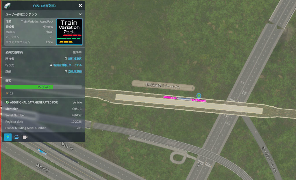 このようにTrain Variation PackのMODを使って、3両編成にする。京急空港線も同様。