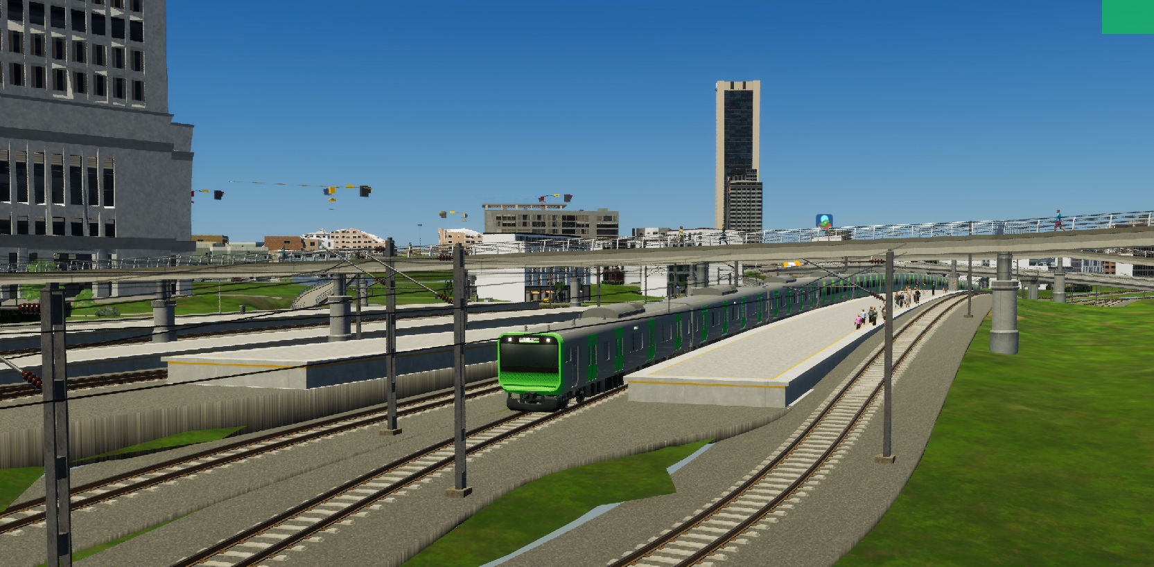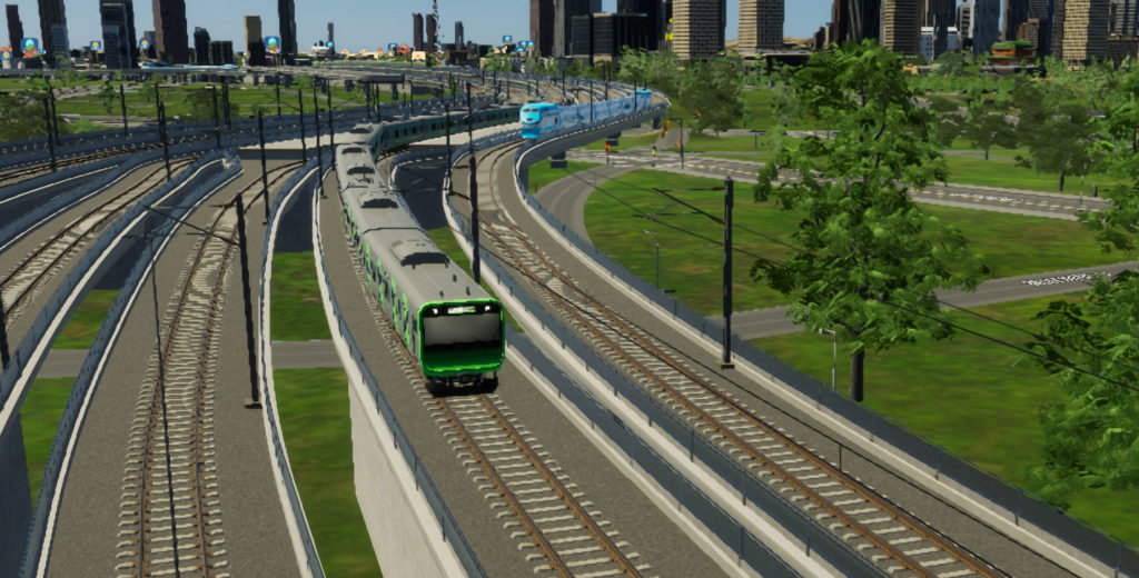 山手線のアセットをアップロードして頂いたので早速使わせてもらいまして、それに対応するように、渋谷~品川~御徒町の11両化が完了しました。あと、ここで書いたような突然変なところに電車が行ってしまったり、何度も書いているクロスポイント問題などがこのゲームにはあるのですが、なんとか制作上の工夫により山手線・京浜東北線並走区間かつ11両編成の長さでもそういう怪現象が出ないようにすることに成功し、実装しました。これが一番大きいかも。