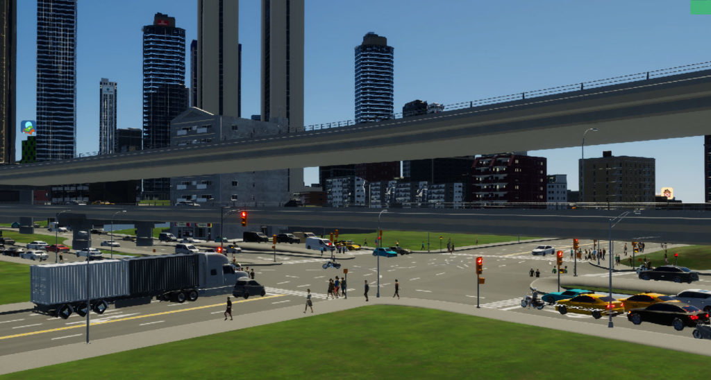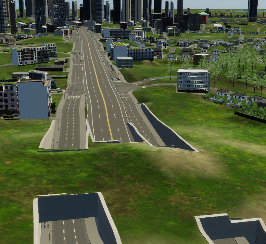 Cities Skylines 2首都高3号渋谷線を延長しました。今回は、青山トンネル~六本木間。まずはここ、青山トンネル出口から都心方向。本来ならこの真正面に六本木ヒルズ森タワーが見えるのですが・・・まだまだこのゲーム、アセット不足で何も無しというwww
