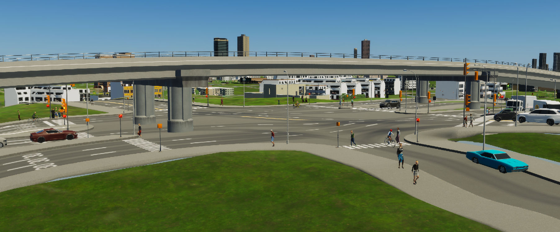 Cities Skylines 2首都高3号渋谷線を延長しました。今回は、青山トンネル~六本木間。まずはここ、青山トンネル出口から都心方向。本来ならこの真正面に六本木ヒルズ森タワーが見えるのですが・・・まだまだこのゲーム、アセット不足で何も無しというwww